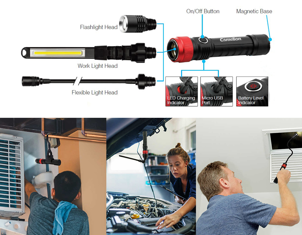 The club members consider the Camelion 3-in-1 LED Light Kit an interesting set. It comes with one rechargeable base unit and three different light-heads that are interchangeable, so it compromises flashlight, work-light, and flexible light into one kit, making it way more than enough for most uses.