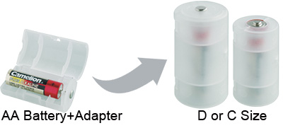 When using two or more adapters together, avoid mixing new and used batteries, batteries with different charge levels or different brands. Don't mix adapters with actual D batteries in the device. Please insert the AA batteries into the adapter correctly. Remove battery after use, or when not in use. Store adapter separately from battery. Do not recharge battery while in the adapter.