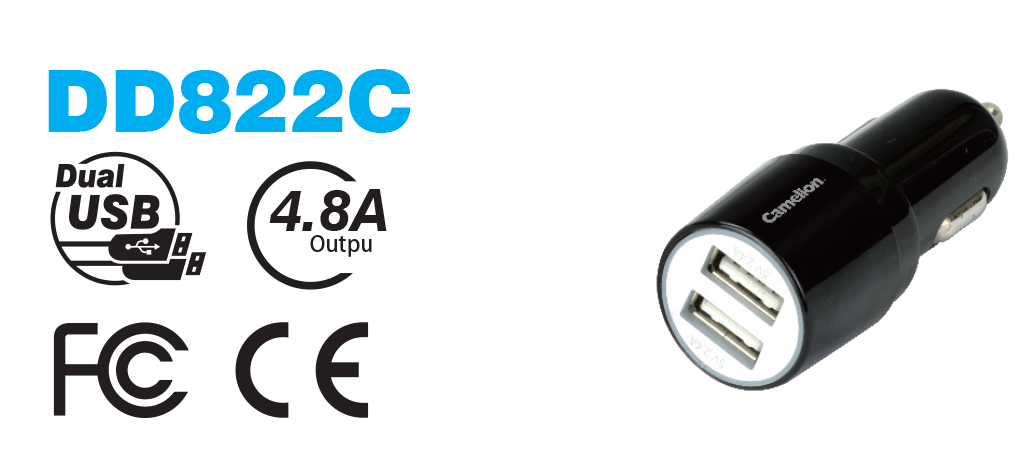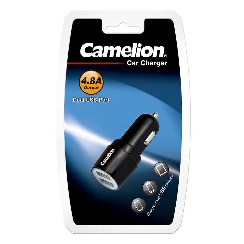 This Camelion USB wall Car charger is operated with 12--24V DC input voltage, it has Output 5V DC 2.4A +2.4A, that suitable for charging all the Apple products, such as iPad, iPhone and iPod, and other digital products and smart phones. |