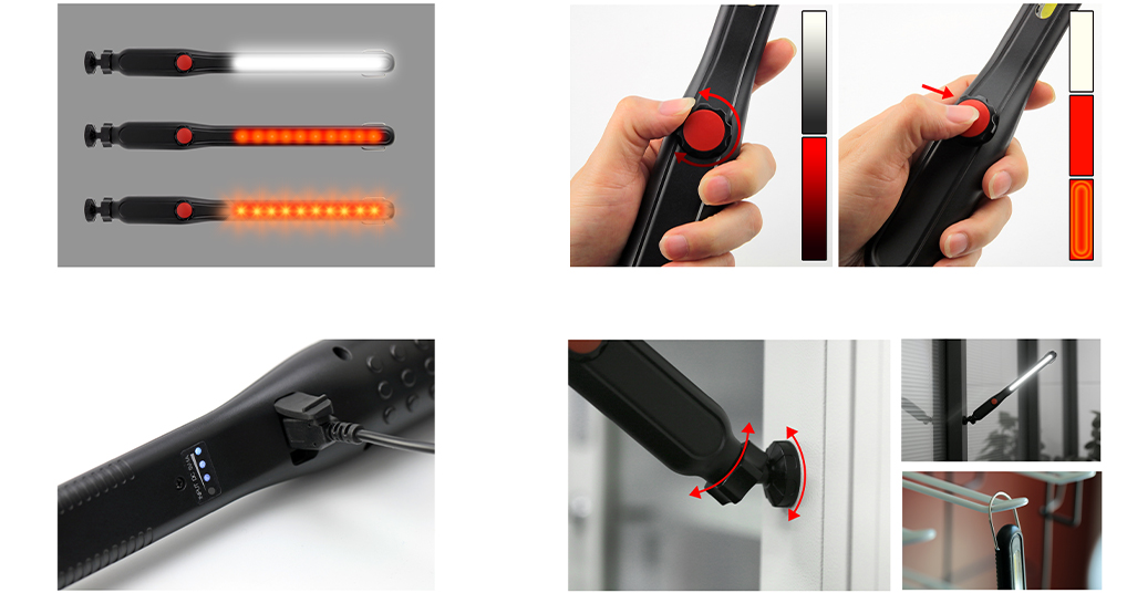 ● Powerful COB - up to 300Lm, providing sufficient light source in the dark ● Long Lifespan COB - efficient and durable ● Dimmable Switch – brightness adjustable, perfectly fits your requirements ● Adjustable Base Angle – for various lighting directions ● Environmental Friendly -high capacity and rechargeable ● Portable and Hand-free – designed with a slim edge for usage within narrow spots, with magnets and hooks for more convenience