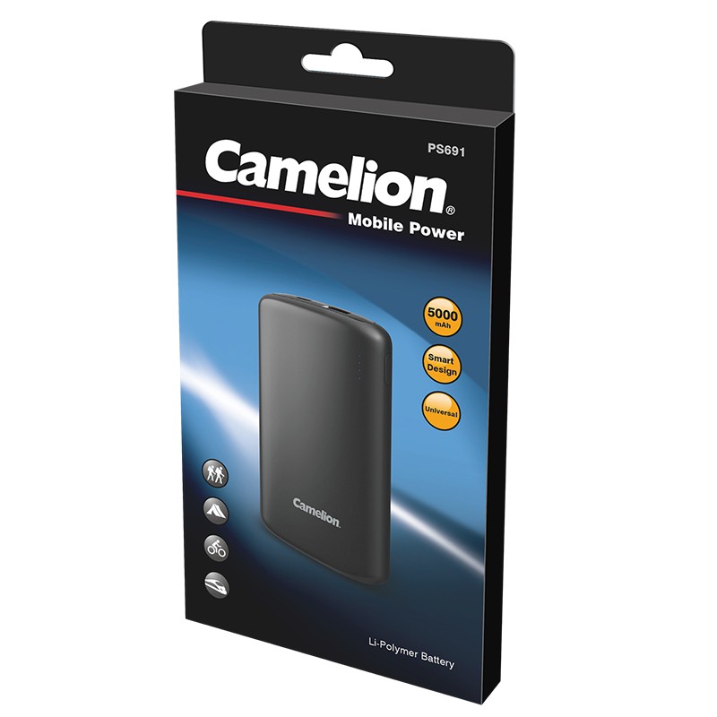 Camelion PS691 Mobile Power has a stylish appearance and operates by a 5000mAh Li-Polymer Battery. Its intelligent circuit provides safe and high efficient charging which is perfectly compatible with most rechargeable equipments based on USB 5V charging input, such as mobile phones, portable Bluetooth speakers and more.