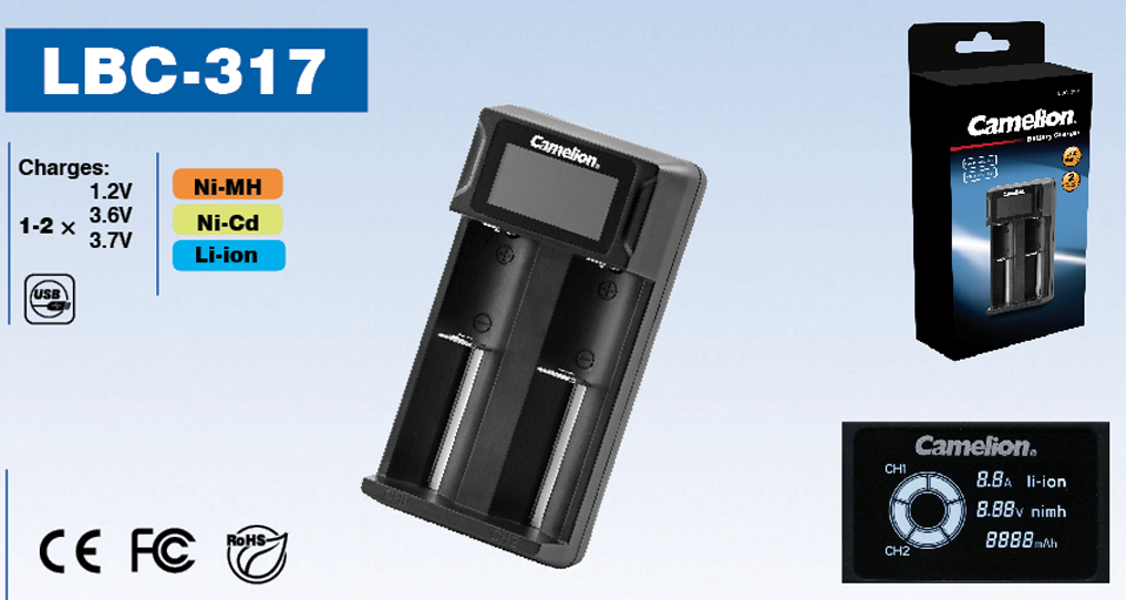 This Camelion universal battery charger is a battery charger that’s capable of charging 1.2V size AAAA, AAA, AA, SC, C, D NiMh or NiCd rechargeable batteries, also this charger can charge 3.6V or 3.7V cylindrical Li-ion batteries of size (10400 to 32650).