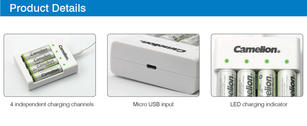 ● Input : 5V 1.5A ● Output : AA: 4× (1.4V 0.3A) AAA: 4 × (1.4V 0.15A) ● Timer Control: 8 hours ● Color: White |